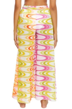 Iseree crochet pants feature side slits and offer a fabric self tie belt at waist with colorful tassel ends.