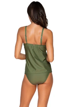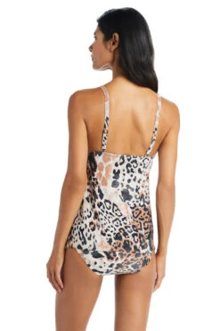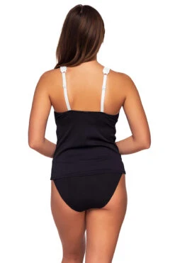 This essential tankini is our interpretation of the season’s hottest trend, the high neck. With a subtle peek-a-boo opening and a shirred neckline, elegance and grace never looked so good. Other features include cross-back straps with soft ties and full adjustability, removable soft cups, side stays, power mesh back bra tails, and matching colored lining.