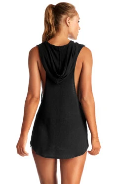 The Myka is a cropped, rib knit that features wrap around ties at waist and offers adjustable button straps.