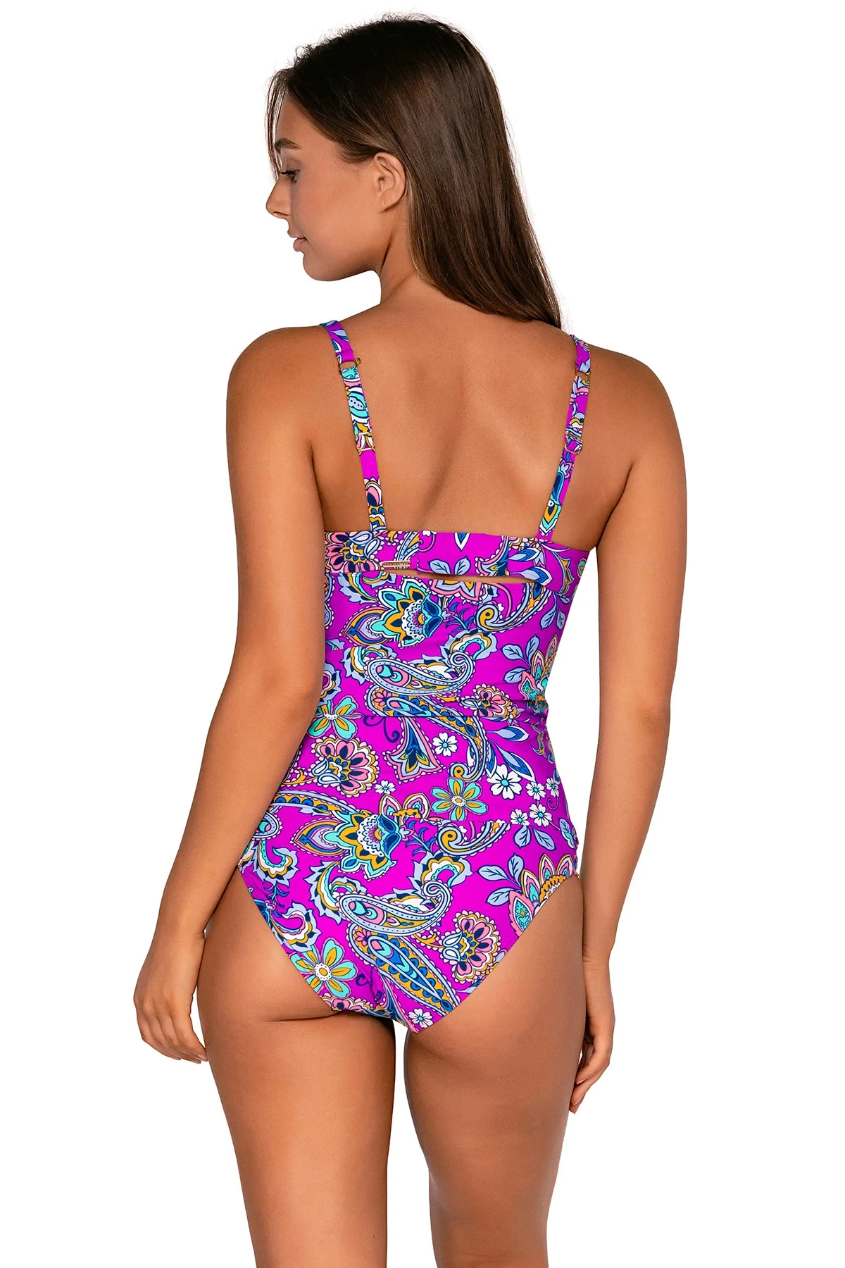 We took one of our best-selling tankinis and turned it into a specialty top. Form-fitting and flattering, the Serena Tankini features an underwire, removable cups, adjustable straps with j-hook, and a hidden hook and eye bra closure. Pair with the high road bottom, and it has the appearance of a sophisticated one piece.