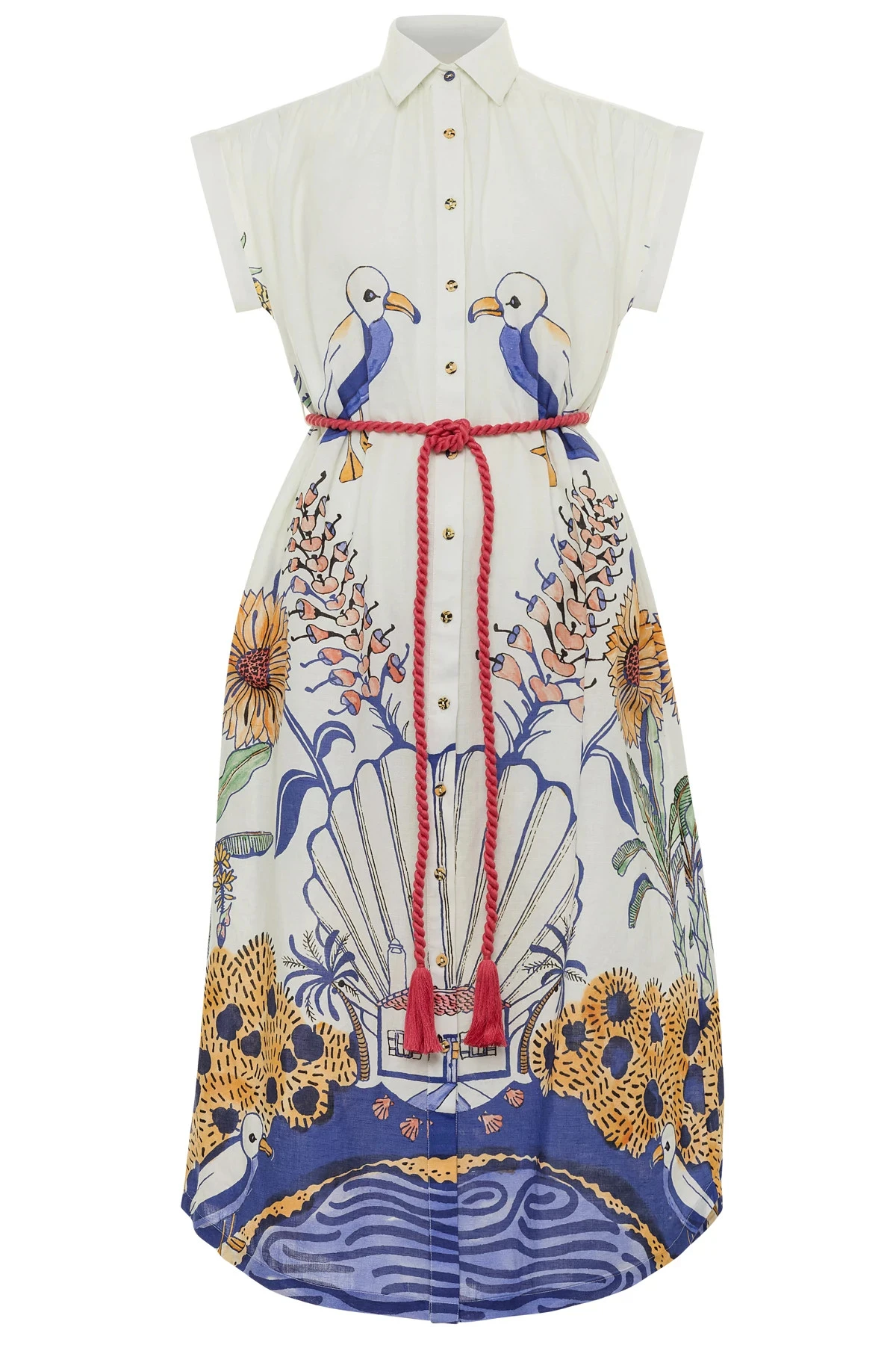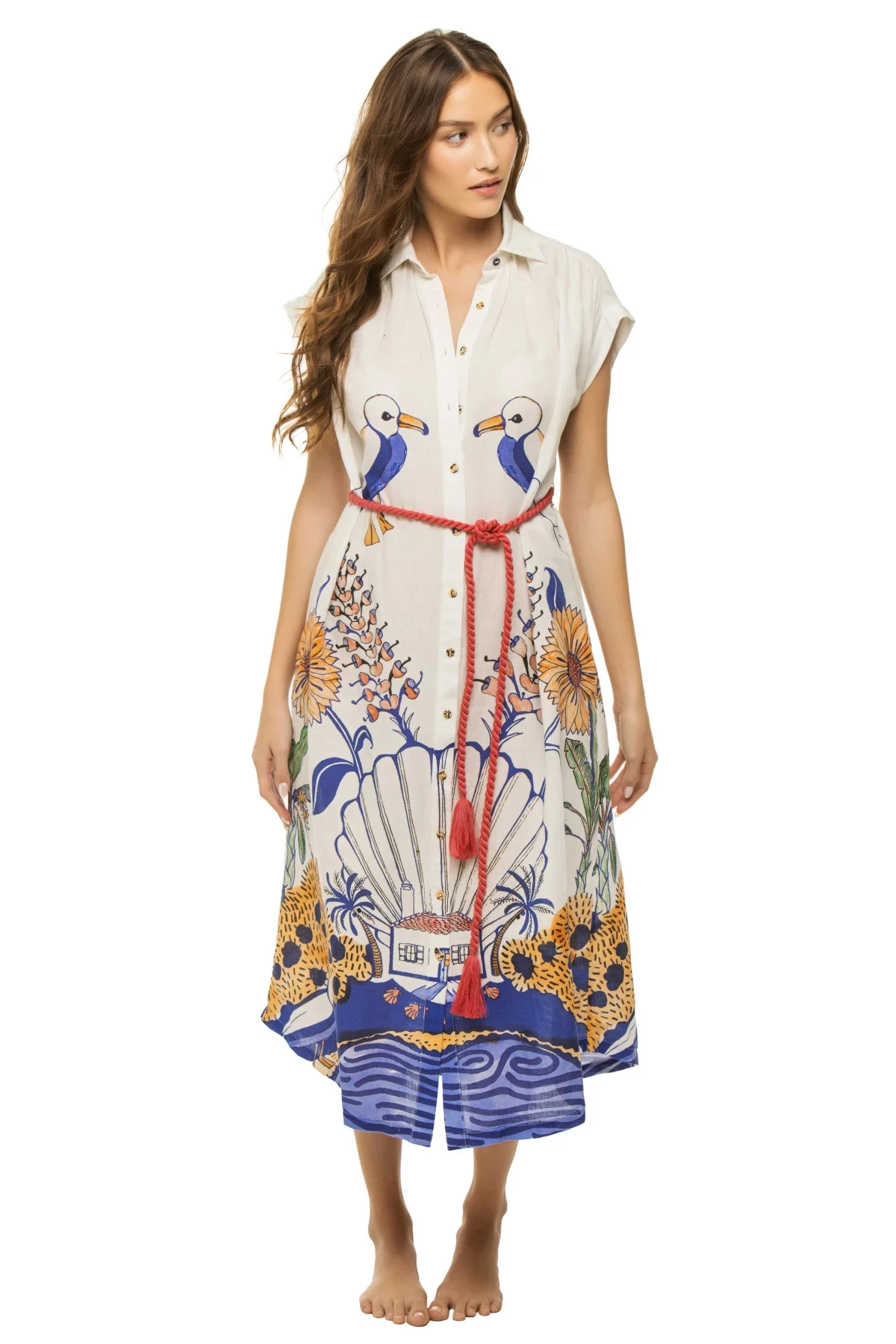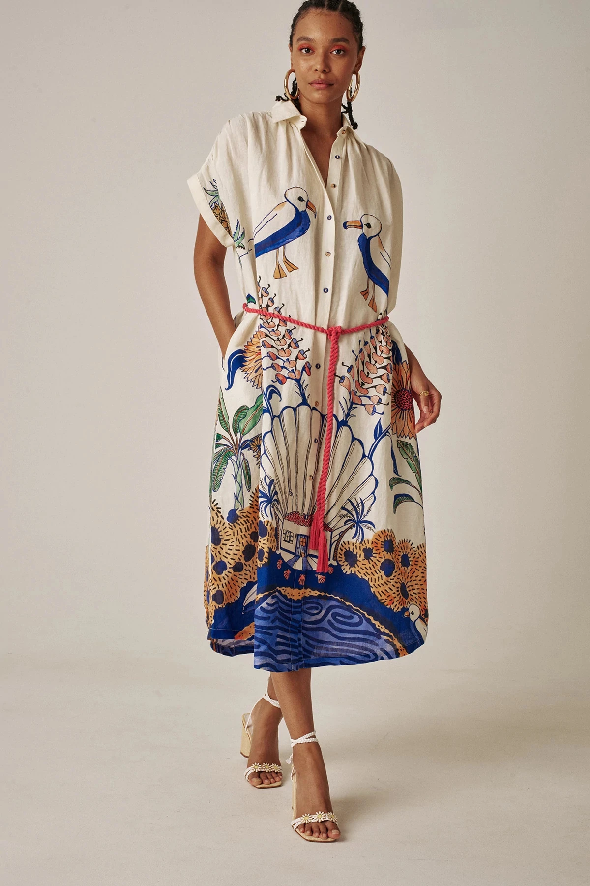 Valerie caftan features a symmetrically placed print and offers a midi length, front buttons and a rope tie at waist.