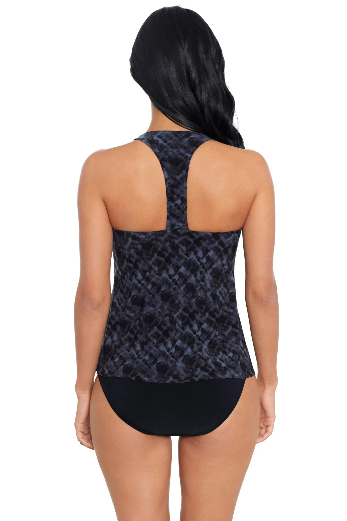 Taylor tankini top features a tie dye print and offers supportive underwire with removable soft cups.